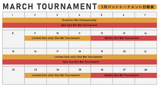 | 3月12日〜3月14日 | 3月16日14時〜 | Evolution Gamingのすべてのゲーム |