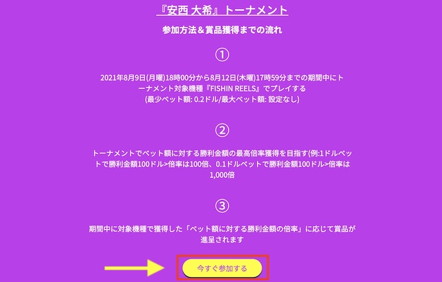 - トーナメントへの参加はリアルマネーでのプレイが必要で、ボーナスマネーの使用は対象外です。