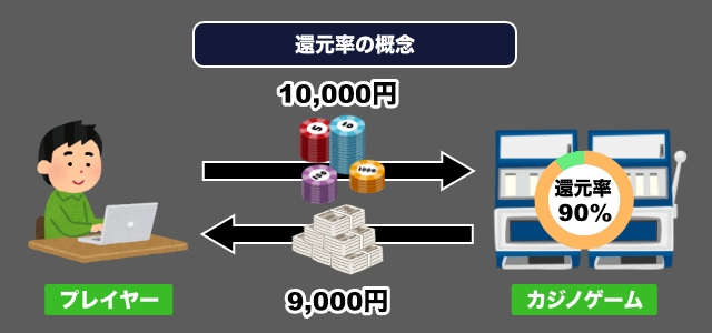 還元率は賭け金あたりに戻ってくる配当の割合を指し、ギャンブルの稼ぎやすさを比較するうえで重要な指標となります。
