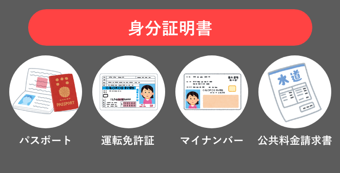 主に身分証明書として提出するのは、運転免許証やパスポート、公共料金の明細書になります。
