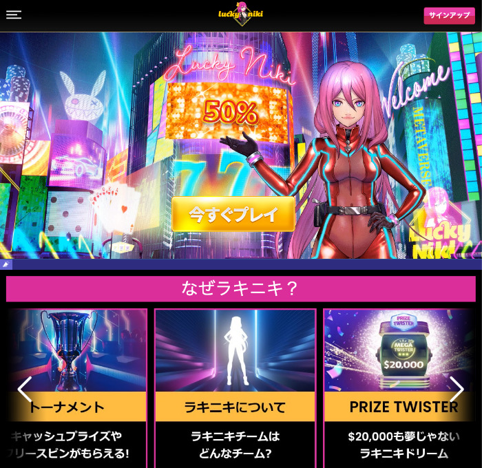 ラッキーニッキーカジノの初回入金キャッシュバックでは、50%還元の最大$500を獲得できます。