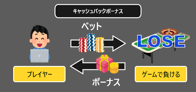 - キャッシュバックボーナスは負け越した時に貰えるボーナス