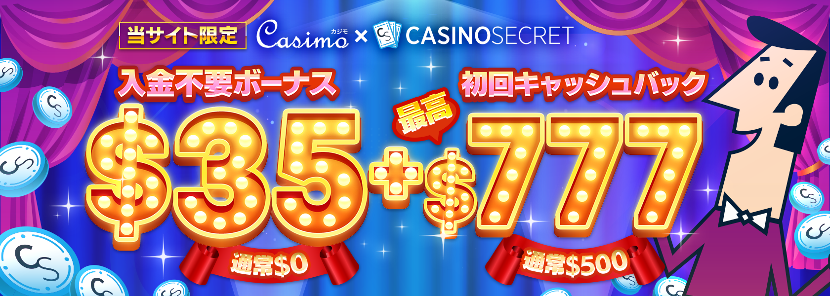たとえばカジノシークレットの初回入金キャッシュバック上限は通常$500で、当サイトから登録すると上限$777といったように最高進呈額が決まっています。