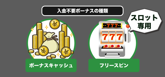 - キャッシュだけでなくフリースピンが貰える入金不要ボーナスもある