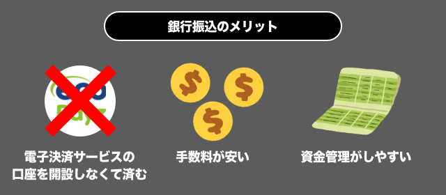 手軽に入金でき、手数料もかからないとなれば、銀行振込を利用するメリットはかなり大きいといっていいでしょう。