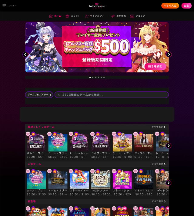 インターカジノは1996年から20年以上に渡って運営を続けている老舗オンラインカジノです。運営元はベラジョンカジノと同じ企業で、日本市場にいち早く参入したパイオニア的存在でもあります。2020年に大幅リニューアルを遂げた機に、銀行振込も使えるようになりました。