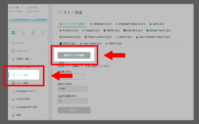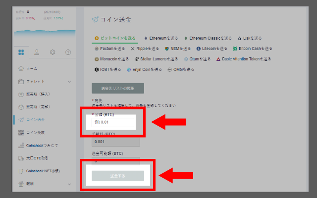 続いて、取引所やウォレットにログインして、送金ページを開いてください。