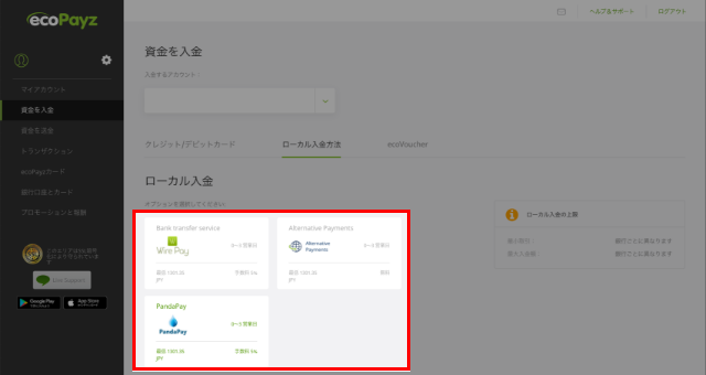 - エコペイズからオンラインカジノ・ブックメーカーへ入金する