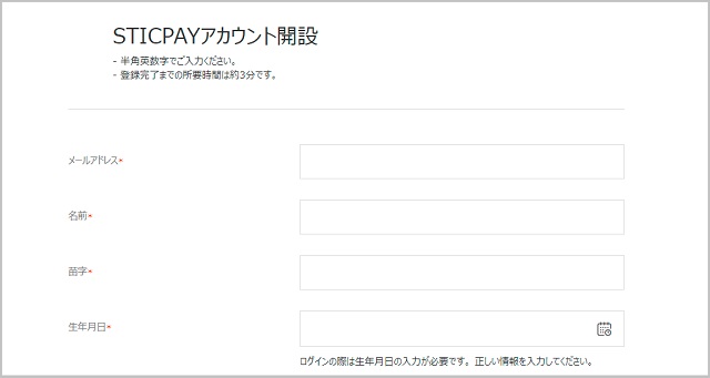 スティックペイ公式サイトにアクセスし、ページ上部の「会員登録」かページ左側の「STICPAYアカウント開設」をクリックしてください。