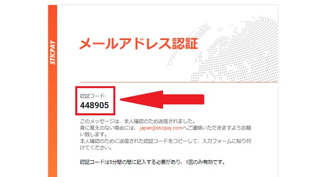 登録メールアドレスに届いた認証コード6桁を確認し、制限時間内に半角数字で入力してください。