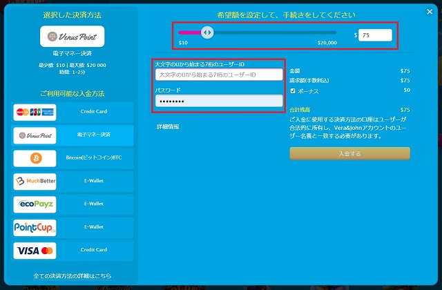 - ヴィーナスポイントからオンラインカジノに入金する方法