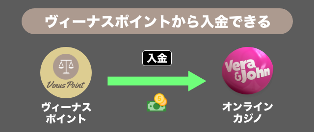 一度ヴィーナスポイントへ入金できればオンラインカジノへの入金も可能