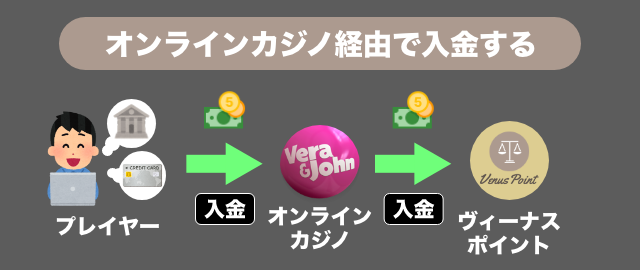 オンラインカジノからヴィーナスポイントに入金するまでの流れは以下のとおりです。