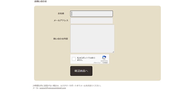 ヴィーナスポイント公式サイトのトップページ下にある「お問い合わせ」をクリックすると、お問い合わせフォームが表示されます。