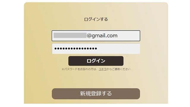 少し下にスクロールして、ログインフォーム下にある「新規登録する」をご確認ください。