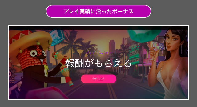 個別に報酬として配られるのは、よく遊んでいるゲームに使えるボーナスマネーやフリースピンです。ボーナスマネーは出金条件10倍、フリースピンは出金条件21倍と比較的ゆるい出金条件で設定されています。
