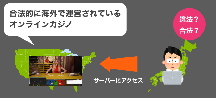 オンラインカジノ自体は運営拠点の国の法律と取得ライセンスに基づいて運営されており、その国においては完全に合法的な存在です。また運営拠点がない国でも、オンラインギャンブルの利用を法律で認めている国なら合法サービスといえます。