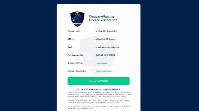 | ライセンス | Curaçao eGaming(オランダ領キュラソー) |