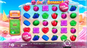 スイートボナンザ・ベラジョンはPragmaticPlay社のスイートボナンザのベラジョン版です。スロット上部にはベラジョンのマスコット「ラッキー」が顔をのぞかせ、キャンディ柄にはベラジョンの文字があしらわれています。