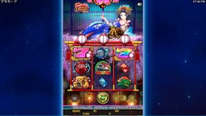 パチンコ・パチスロを彷彿とさせる演出が特徴的で、7が揃うと「キュインキュイン」とあの気持ちいい音が鳴り響きます。ボーナスステージに入ると浴衣を着た花魁がセクシーな格好で魅了してくれる演出は、日本ユーザーに人気な理由の1つです。