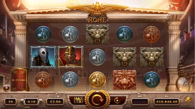 CHAMPIONS OF ROMEは古代ローマの剣闘士の闘いをテーマにしたスロットです。