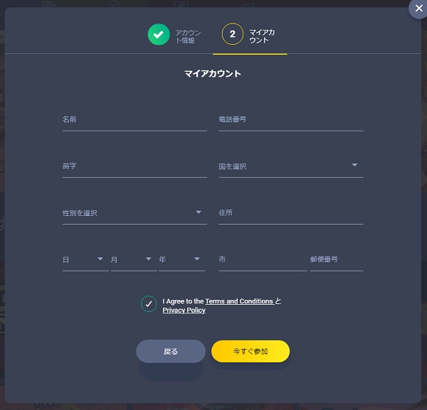 全て入力し終えたら、利用規約同意にチェックを入れ、『今すぐ参加』をクリック。最後のステップに移ります。