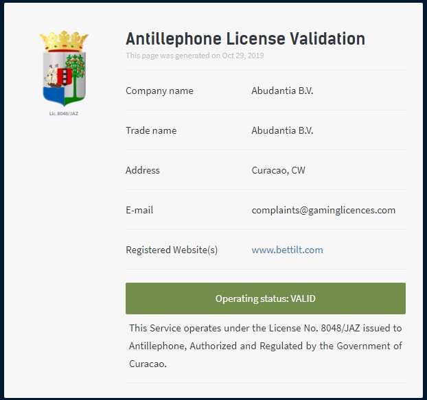 ベットティルトはというと、「オランダ領キュラソー政府」公認機関から正式にランセンスを取得しています。