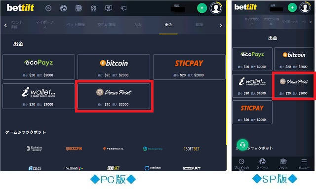 - 電子ウォレット:ecoPayz,VenusPoint,iWallet