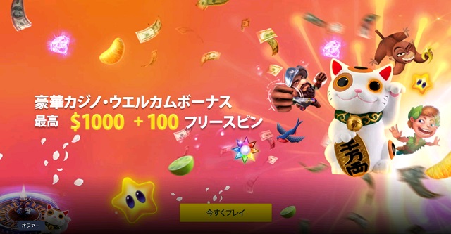- ウェルカムボーナス(最高$1,000+100フリースピン)