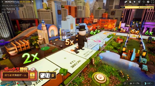 Monopolyはあの定番ボードゲーム「モノポリー」とマネールーレットが融合したゲームです。