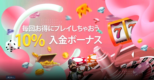 $100入金でも$10ボーナスがもらえるので、軍資金をちょっとでもプラスして遊びたい人はぜひ有効活用してください。