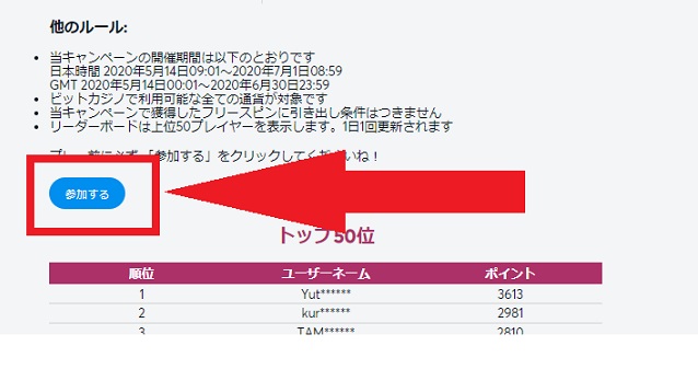 基本的にはビットカジノのボーナスのもらい方はどれも同じです。 もらいたいボーナスを選び、「参加する」をクリックします。以下で具体例をもちいて、ボーナスをもらう流れをみていきましょう。