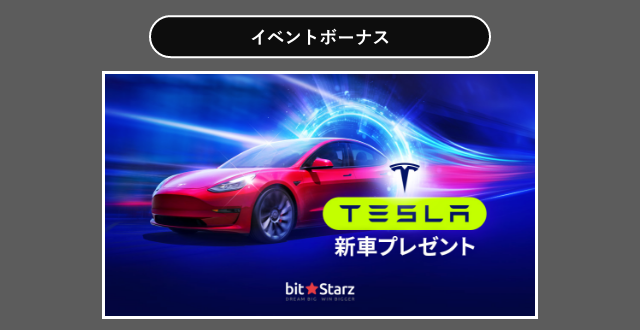 たとえば、2021年にはアメリカのTESLA最新車(約550万円相当)をプレゼントするイベントが開催されました。車をプレゼントにしてしまう太っ腹なオンラインカジノはそうそうありません。