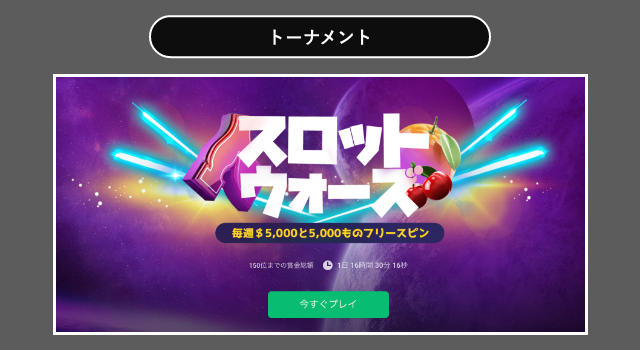 ビットスターズで開催されている各種トーナメントで上位入賞すれば、キャッシュボーナスやフリースピンを獲得できます。