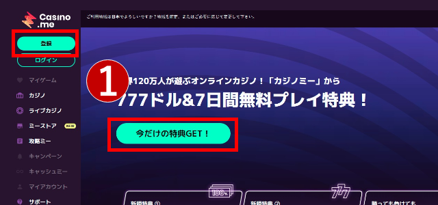 カジノミーでは初回~4回目入金までで最高$777+77回フリースピンのウェルカムボーナスが貰えます。