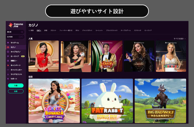 さらに、サイト内ブログ「攻略ミー」では運営のおすすめゲームやゲームの攻略法を紹介する徹底ぶりです。カジノミーの”攻略”要素をフル活用できるようになれば、カジノゲームで遊ぶのがより楽しくなります!