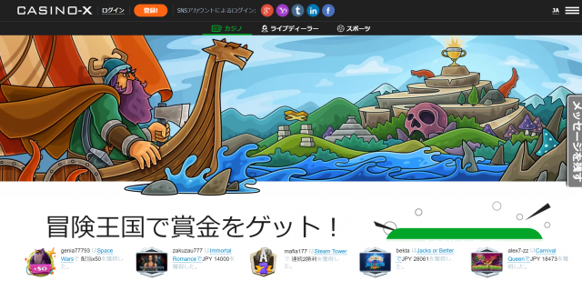 カジノエックスは、オンラインカジノ初心者からベテランまで幅広く人気のあるオンラインカジノです。