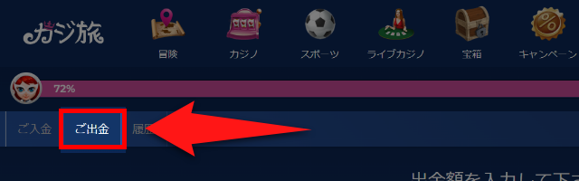 カジ旅で獲得した勝利金は下記手順で出金し、現金化できます。画像付きで解説しますので、初出金の際の参考にしてください。