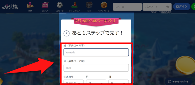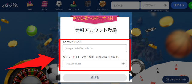カジ旅では新規プレイヤー向けの限定特典として、下記ボーナスをプレゼントしています。