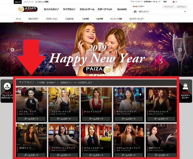 公式HPのトップページにある『ライブカジノ』メニューでプロバイダーのアイコンをクリックしてください。クリック後、各プロバイダーのライブカジノロビー画面が表示されます。