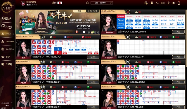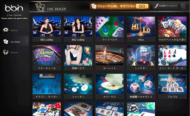 BBINはアジア系プロバイダーの中でも特にゲーム数が多いプロバイダーです。ルーレットは2テーブルしかありませんが、ルーレット以外では「バカラ」「シックボー」「ドラゴンタイガー」「ポーカー」「ファンタン」「カラーゲス」「ブルブル」「パイガオ」で遊ぶことができます。