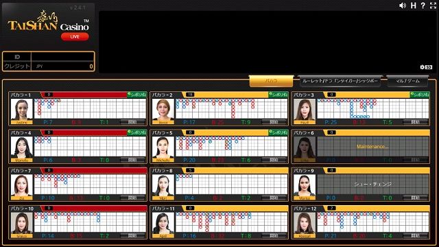 タイシャンライブはアジア有数のライブバカラプロバイダーで、稼働テーブルの9割はバカラとなっています。