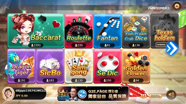 ルーレットやバカラだけでなく、ファンタンやダイス、麻雀牌を使ったゲームなどアジア圏で人気を博している様々なゲームを楽しめます。