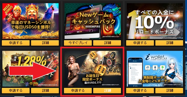 - お誕生日ボーナスを獲得するには10回以上の入金実績が必要です。