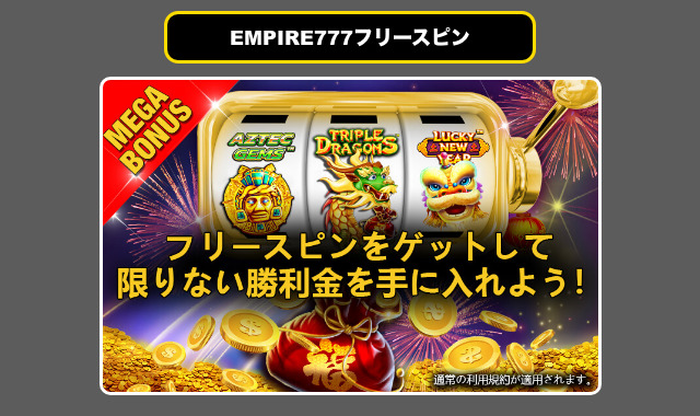 - EMPIRE777フリースピンを受け取った場合、初回入金ボーナスは申請できません。