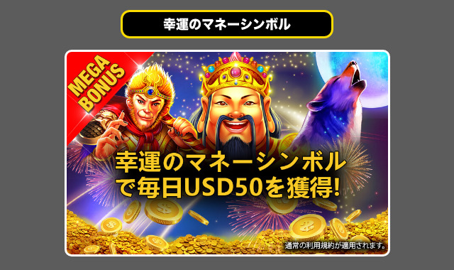 | 幸運のマネーシンボル | $50 | 1倍 | 1ヵ月間 |