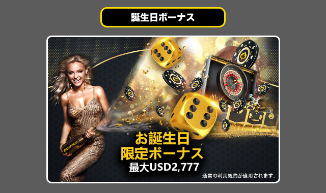 - お誕生日ボーナス利用時にベット上限は課されません。