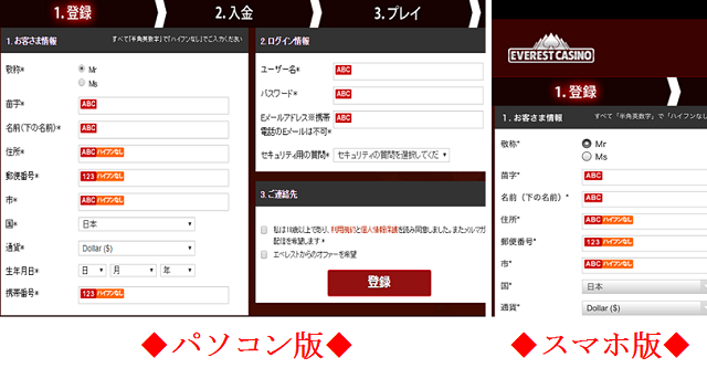 - エベレストカジノへの登録は2分もあれば終わらせることができる