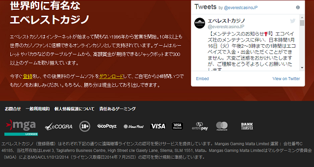 エベレストカジノはどうか、調査した結果を見てみましょう。