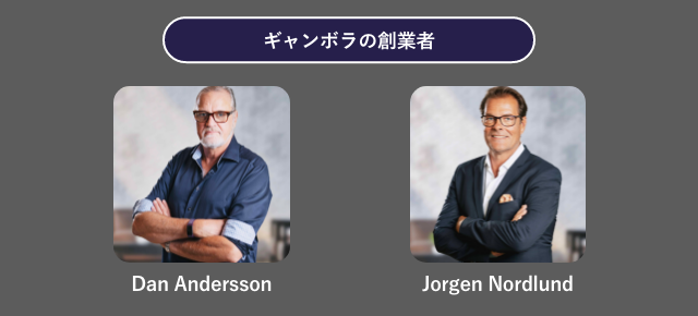 ギャンボラの運営会社であるGlitnor Groupはオンラインカジノ業界で豊富な実績を持つスタッフ陣によって2018年に立ち上げられました。同社を立ち上げた創業者の「Dan Andersson」と「Jörgen Nordlund」、実は彼らは今や日本で一番人気のベラジョンカジノを北欧で創った業界の有名人なんです。